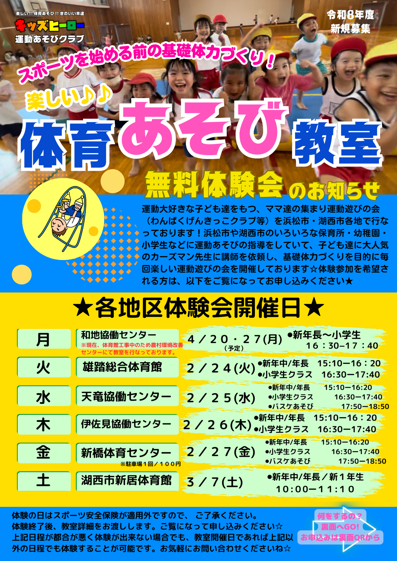 ※体験会日はスポーツ安全保険が適用外ですので、ご了承ください。